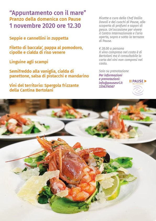 L'appuntamento con il mare di Pause cambia data e orari, nel rispetto delle nuove normative anti Covid-19. Il prossimo pranzo di pesce di Pause Atelier dei Sapori si terrà quindi domenica 1 novembre.